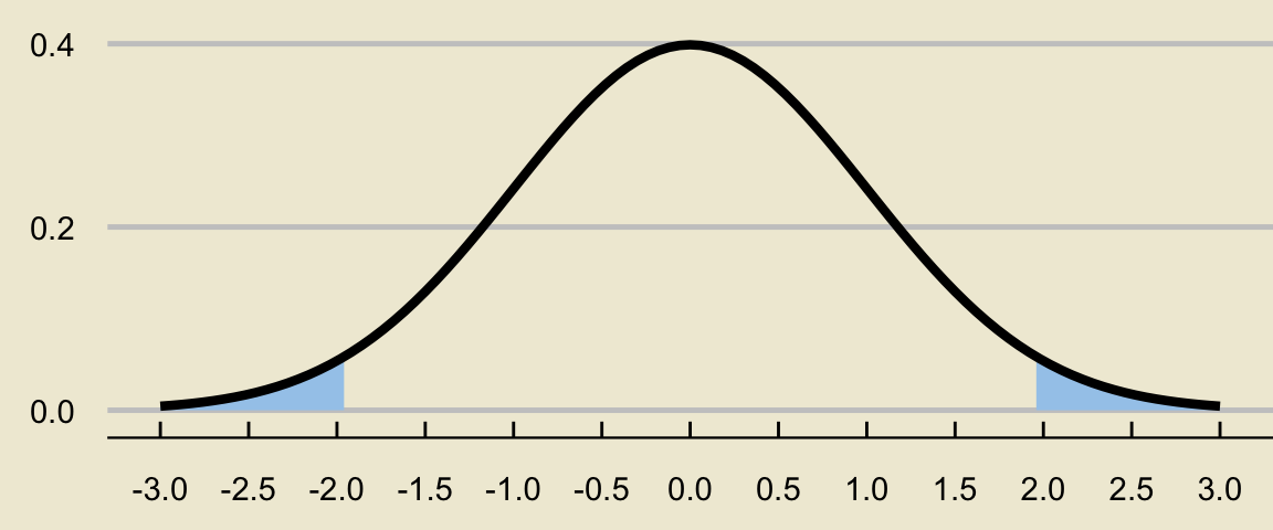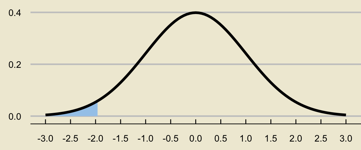 Again, \(z_\alpha\) must satisfy \[ \mathbb{P}(Z \leq -z_\alpha) = 0.025 \]