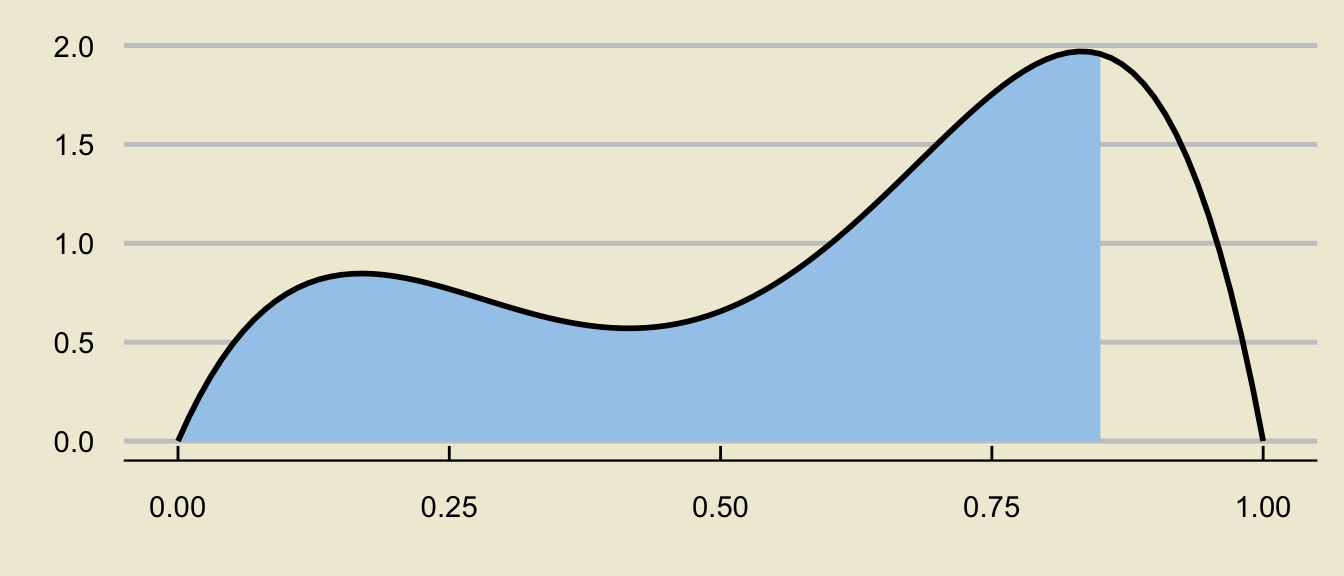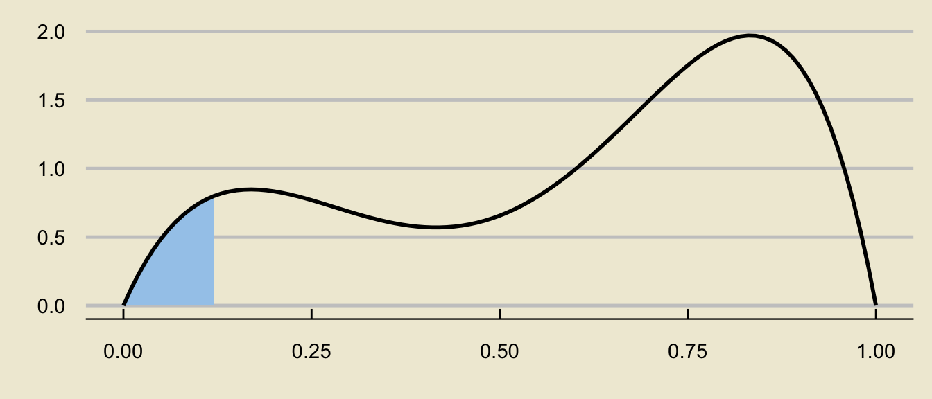 What is the c.d.f. of wait times? (I.e., find the probability that a randomly selected person spends less than \(x\) minutes waiting in line, for an arbitrary value \(x\). Yes, your final answer will depend on \(x\); that’s why the c.d.f. is a function!)