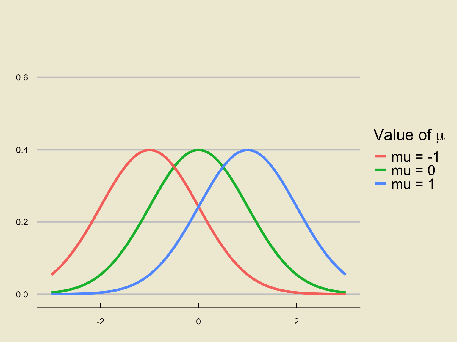 Holding \(\sigma = 1\) fixed and varying \(\mu\), we find: